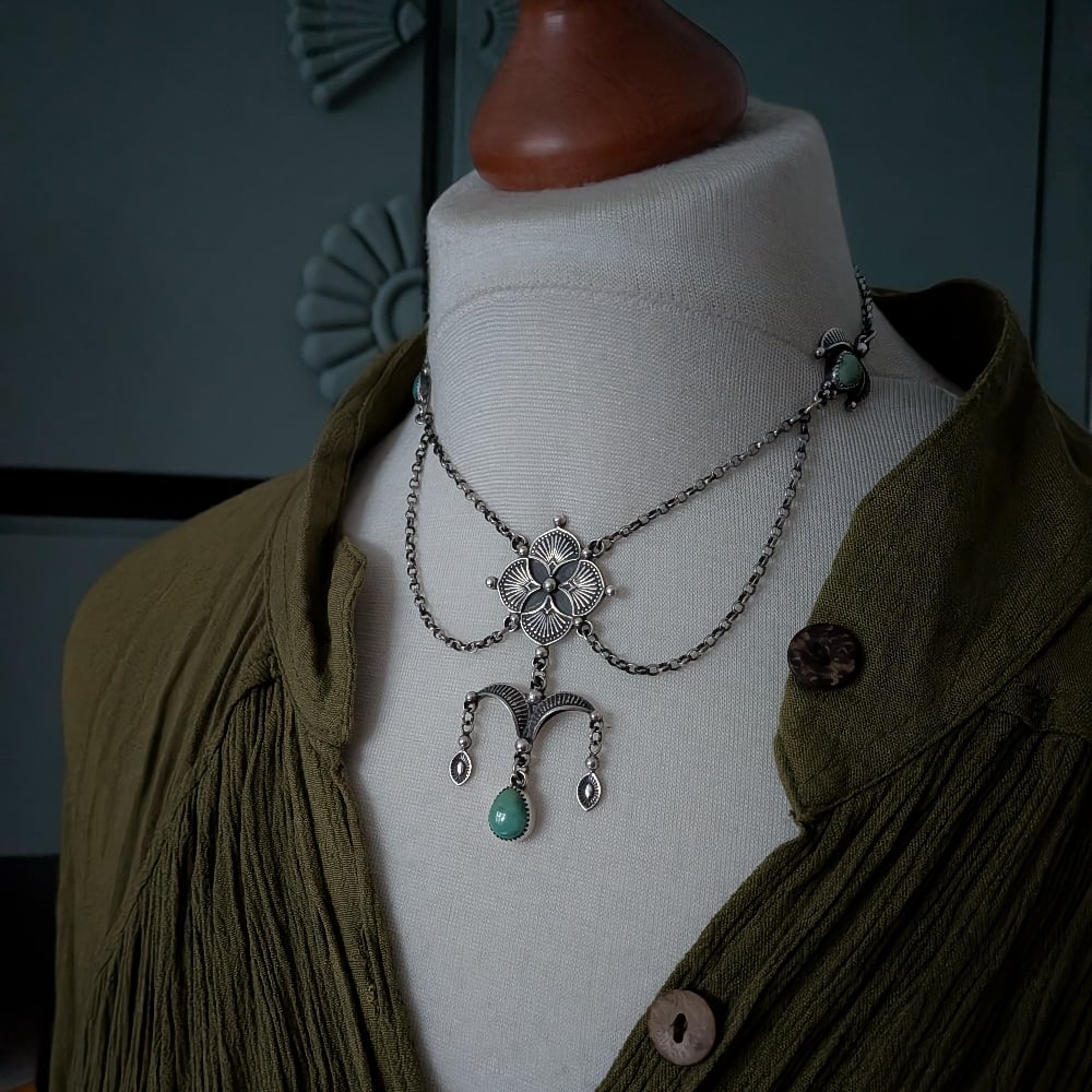 >> statement choker with a lot of details and beautiful emerald valley turquoise