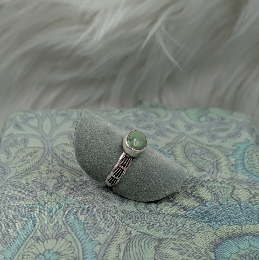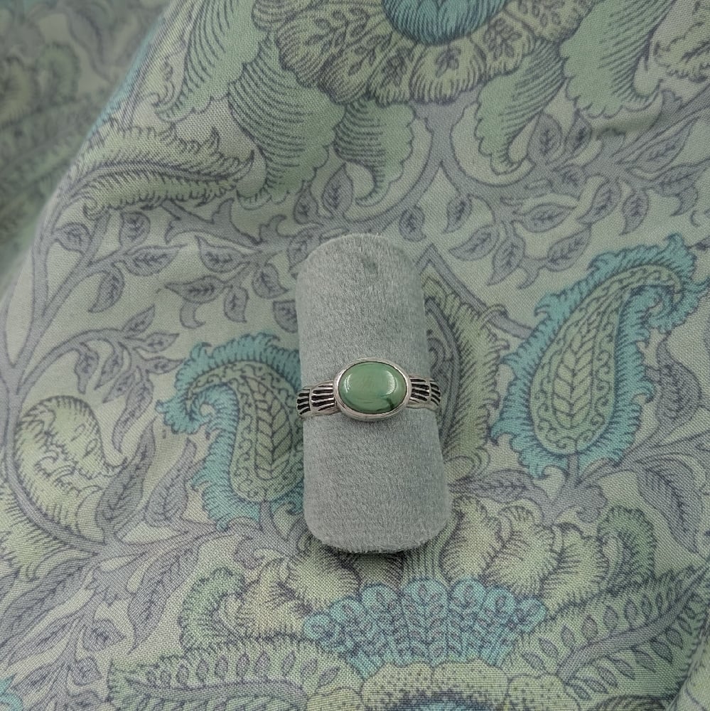 >> ring with a beautiful emerald valley turquoise and handstamped details
