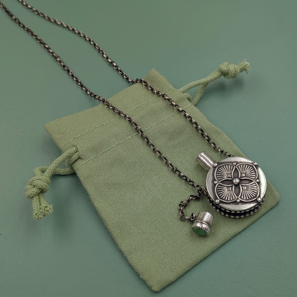 >> sterling silver vessel to keep safe your treasures with attached chain.